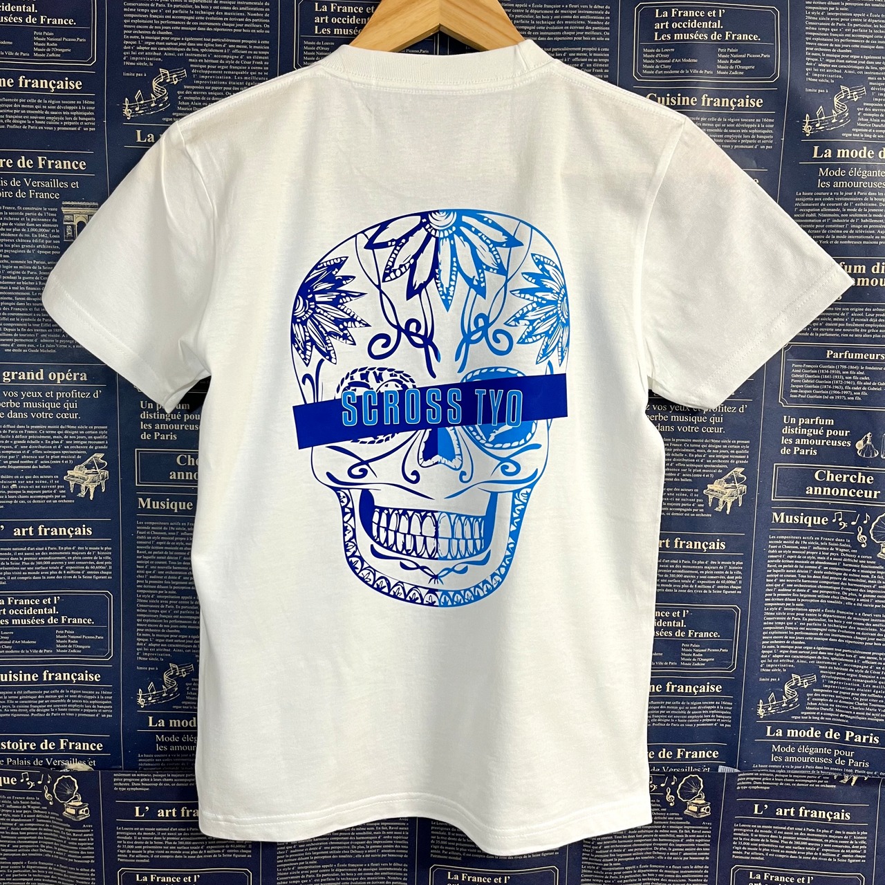 背中に大胆なskullのビッグプリント、胸元にロゴプリントが施されたSCROSS TYO 大人気のskullデザイン。