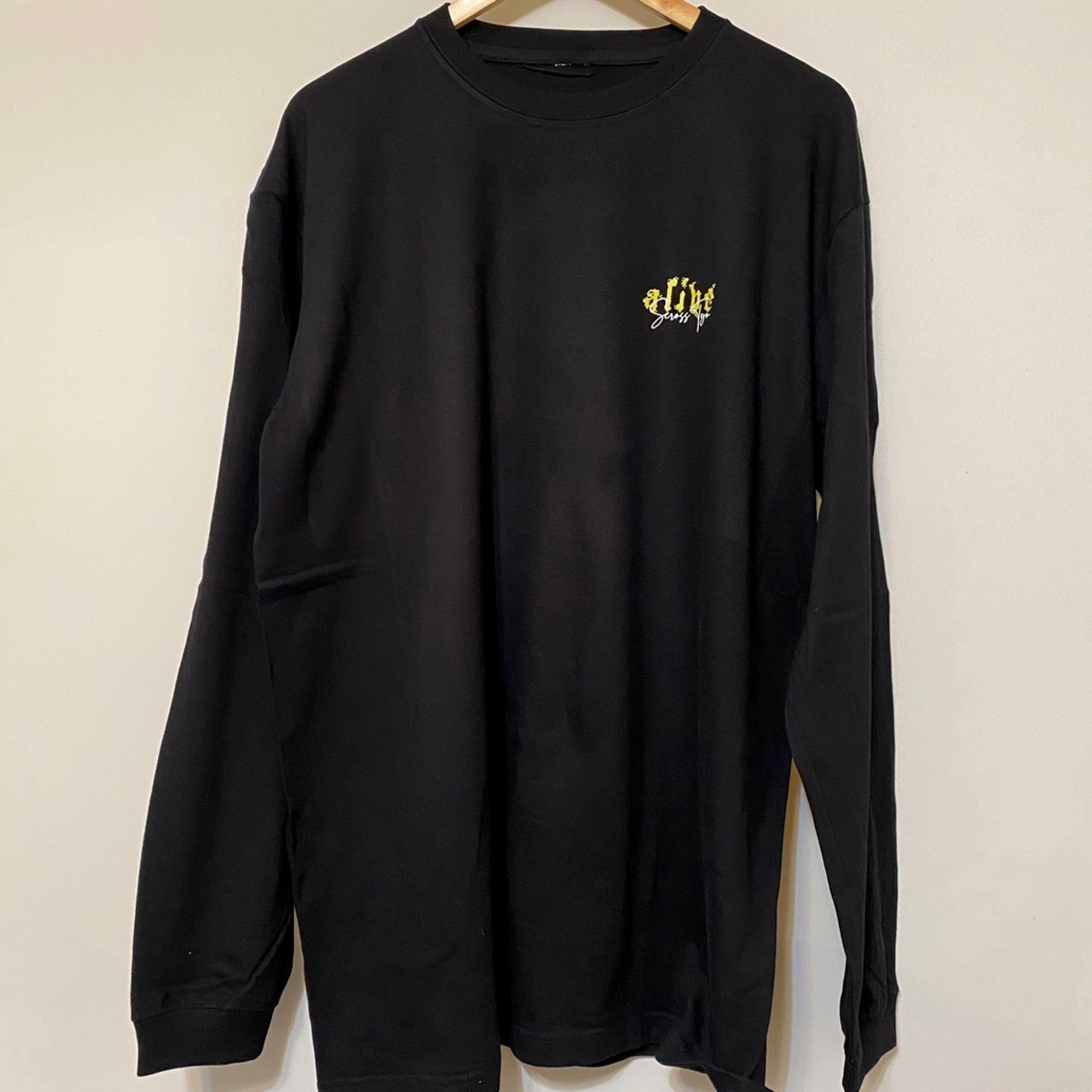 背中の大きなプリントが印象的なロングスリーブTシャツ。